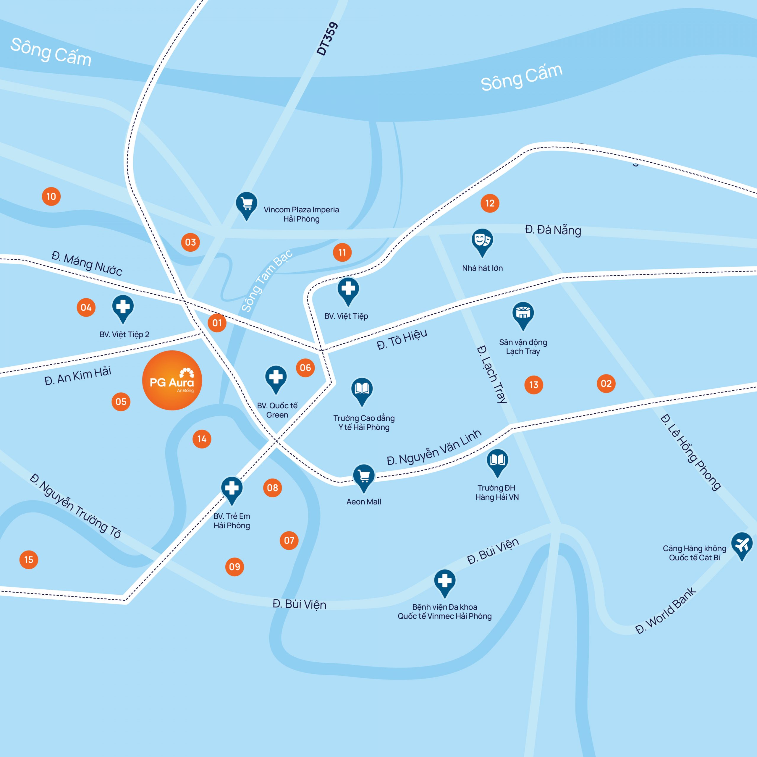 PG Aura An Đồng có hệ thống tiện ích đồng bộ, từ giải trí, giáo dục, y tế đến mua sắm ngay dưới chân toà nhà, đáp ứng nhu cầu sống của mọi thế hệ. Không cần phải đi đâu xa, chỉ một vài bước chân là cư dân có thể chạm tới chuỗi tiện ích hiện đại và tận hưởng cuộc sống đầy đủ ngay trong khuôn viên dự án. Cư dân sẽ tận hưởng không gian xanh mát với tầm view thoáng đãng, ngắm trọn hai dòng sông Lạch Tray và Tam Bạc hiền hoà, cùng khu đô thị văn minh hiện đại.