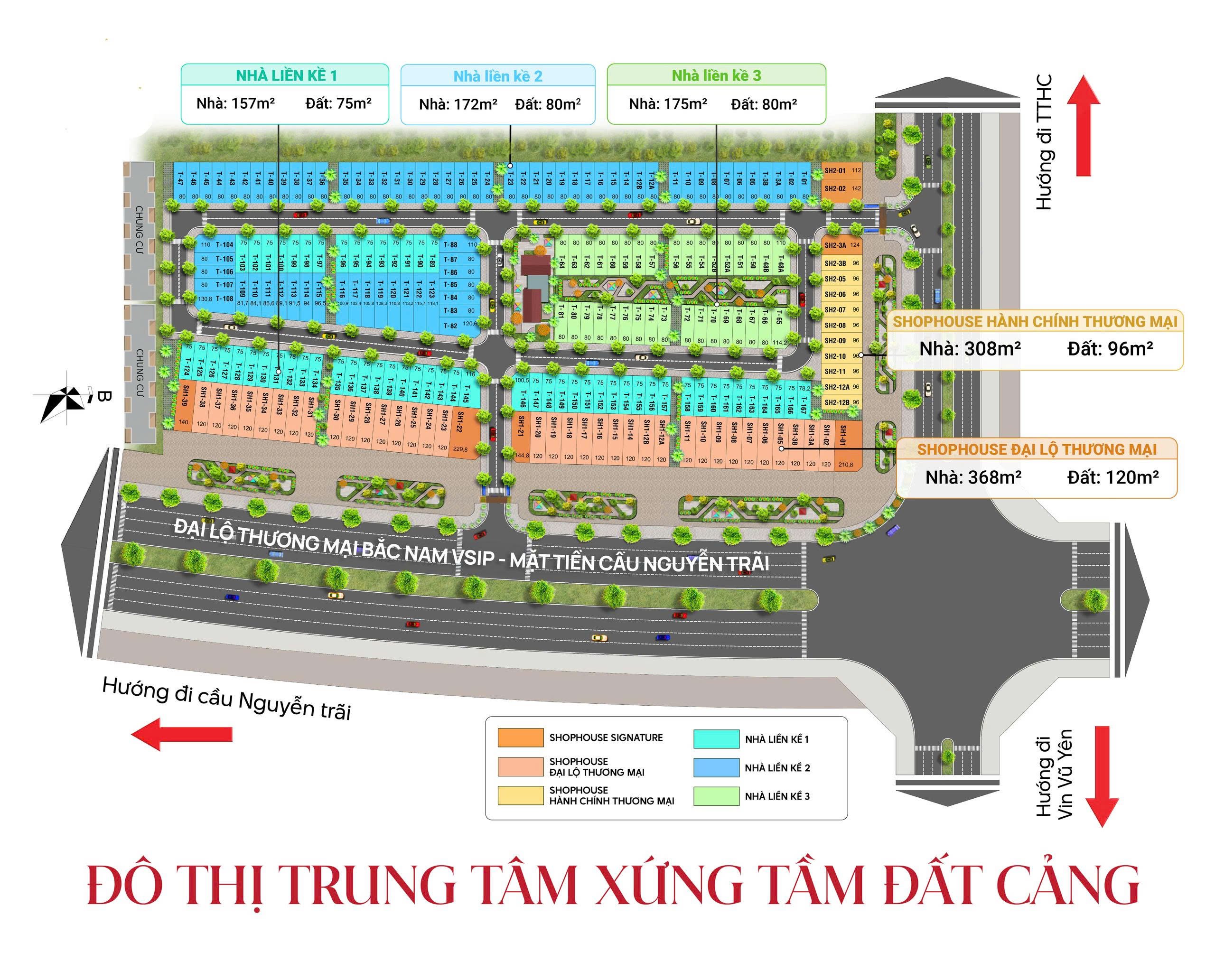 - Loại hình sản phẩm: Shophouse (nhà phố thương mại) và Nhà liền kế (nhà phố liền kề)