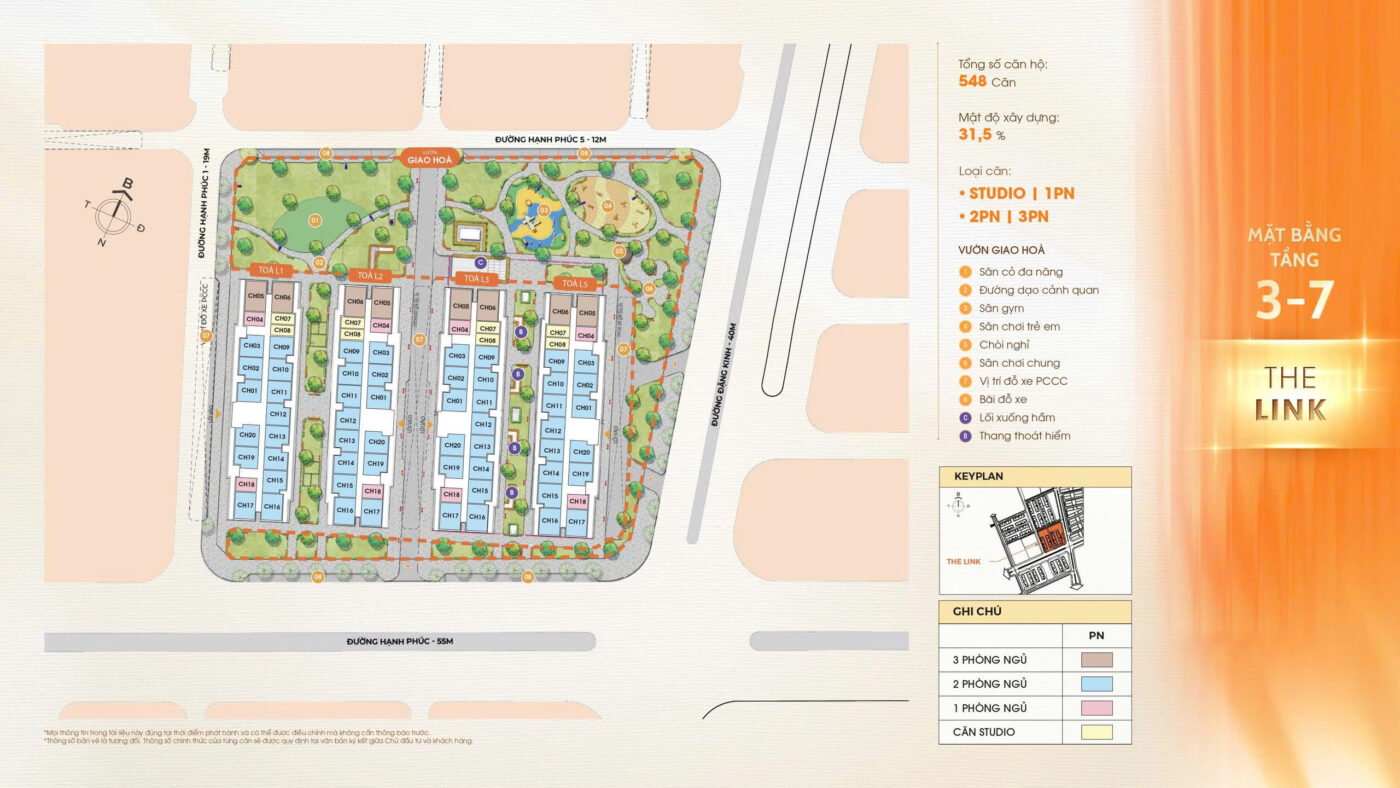 🔸 Quy mô: Mật độ xây dựng thấp 31,5% với 3.804 căn hộ NOXH (20 toà cao 7 tầng, 7 toà cao 9 tầng) và 284 căn nhà thấp tầng liền kề, biệt thự